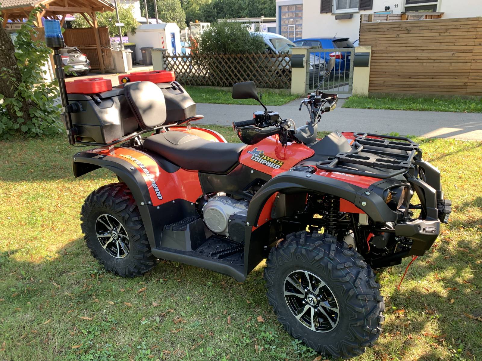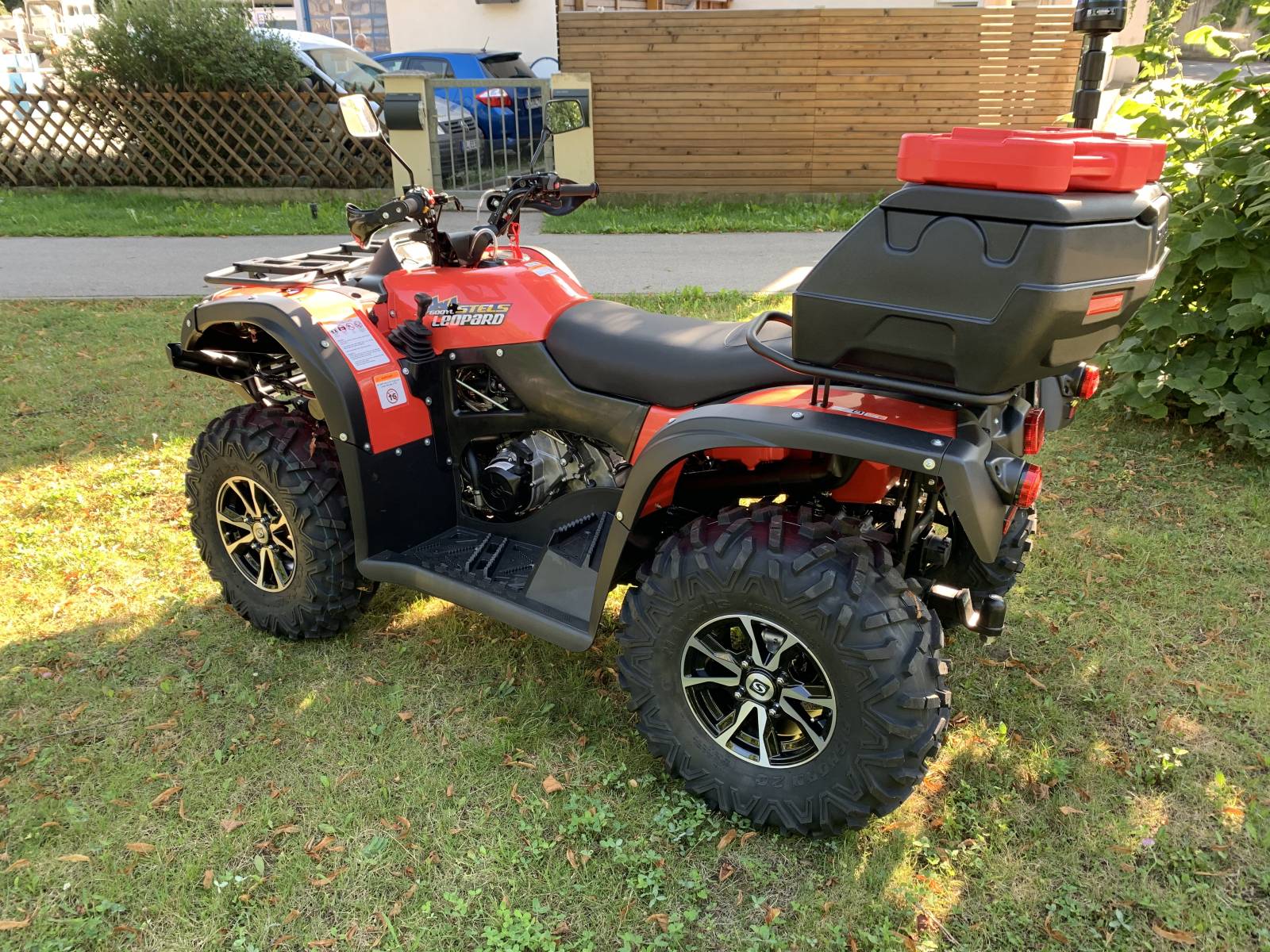 Die Stels Leopard 600 ist das Allrad-ATV für Einsteiger. Es ist ausgestattet mit einer üppigen, am Markt nicht üblichen, Serienausstattung Zuschaltbarer Allrad, Untersetzung, langer Radstand und eine 26-Zoll-Bereifung machen auch sperre Arbeiten zum Vergnügen. Eine Mile Marker-Winde und ein großer Koffer mit zwei passenden 5 Liter Kanistern runden die Ausstattung ab.